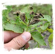Hvert år i august får mine kartofler skimmelsvamp. Især i våde perioder har skimmelsvampene gode betingelser. Næsten alle kartoffeltoppene i haven er blevet angrebet. De bliver brune og visne i toppen. Det bedste værn er at fjerne alle angrebne toppe langt væk, så skaden ikke når ned i selve kartoflerne.
