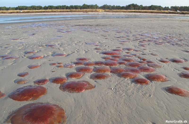 Ved kysterne er det sæson for brandmænd. Brændegoplerne lever af småfisk og plankton som lammes af giften i goplernes fangtråde. Rammes vi af fangtrådene når vi bader udløser nældecellerne en lille modhagebeklædt giftnål. Det svier ubehageligt i huden og giver en brændende fornemmelse, der dog normalt aftager og forsvinder efter et par timer. Brandgoplerne har en 1-årig cyklus. I sensommeren kan store mængder af brandmænd samles langs kysten, hvor de efterhånden driver ind på stranden og dør. Den velkendte røde brandmand er mest almindelig, men også den mindre blå brandmand ses langs kysten i august.