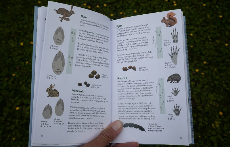 “Spor i naturen” koncentrerer sig om vores hjemlige arter og kommer i en tur-venlig felthåndbog-version på 128 sider, der er let at have med i rygsækken. Dyrespor er begrænsningens kunst, men bogen kommer fint omkring de mest almindelige spor og tegn man krydser derude – og giver svar på mange spørgsmål. Selvom bogen i størrelse og omfang er mindre end bøgerne “Dyr & spor” og den gamle klassiker “Dyrespor”, så er der alligevel lavet plads til nye, spændende – og relevante områder, der medtager f.eks. galler, fuglereder og svampedyr. Jeg kunne dog godt tænke mig et par sider mere i bogen, der bl.a. gav plads til lidt flere galler (f.eks. pilerose) og svampedyr (f.eks. skinnende støvpude). Et felt hvor vi ofte modtager spørgsmål her på NaturGuide.dk.