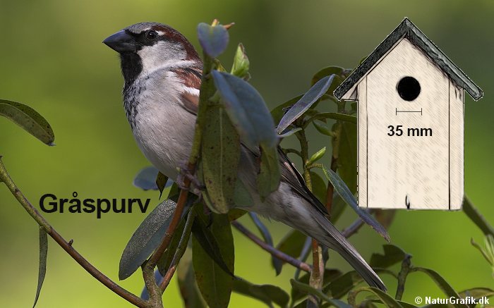 Gråspurven bygger og placerer gerne reden alsidigt. Den finder gerne hulrum oppe under tagskægget. Fra naturens side vil gråspurve gerne bo tæt. Det sociale bofællesskab bidrager sandsynligvis til bedre overlevelse. Bygges en kasse til gråspurve bør flyvehullet være 3,5 cm. Kassen placeres gerne på en gavl eller husmur. Kassens indvendige mål bør være ca. 10×10 cm.