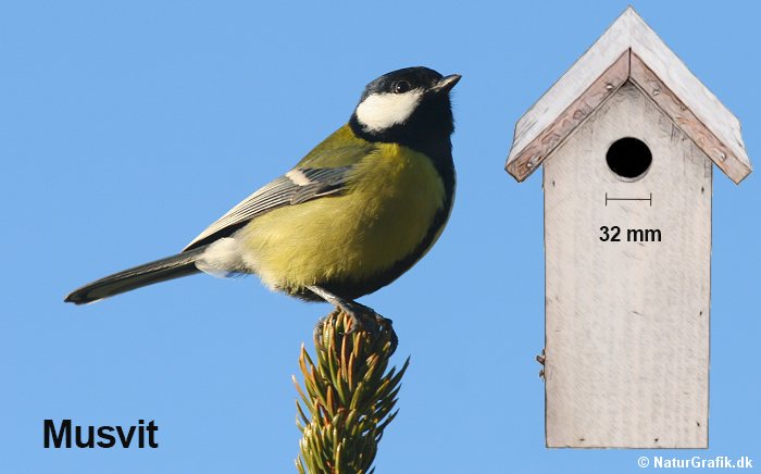 Musvitten er populær i haven og yngler gerne i hjemmelavede redekasser. Placer gerne kassen på et træ, men en husmur kan ofte også bruges. Kassens størrelse og dimension er meget lig skovspurvens med et redehul på 32 mm. Musvitten er dog ikke så social og tåler dårligt andre musvitter i umiddelbar nærhed. Der bør helst være 15 meter til nabo-musvitkassen. Mejsekassen kan også bebos af andre arter som f.eks. Broget fluesnapper. Musvitten er meget alsidig og redekassen kan udformes i mange former og farver.