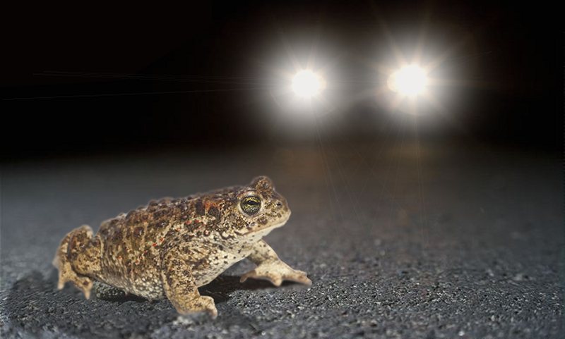 Skrubtudserne begynder efter en lang vinter at røre på sig og komme frem fra vinterskjulestedet. Vi bemærker det især når vi fra bilen ser de mange tudser krydse vejene. Her ender tusindvis af tudser som tallerkentudser – flade mod asfalten. I modsætning til frøernes kvikke hop så kravler og vralter skrubtudsen af sted.