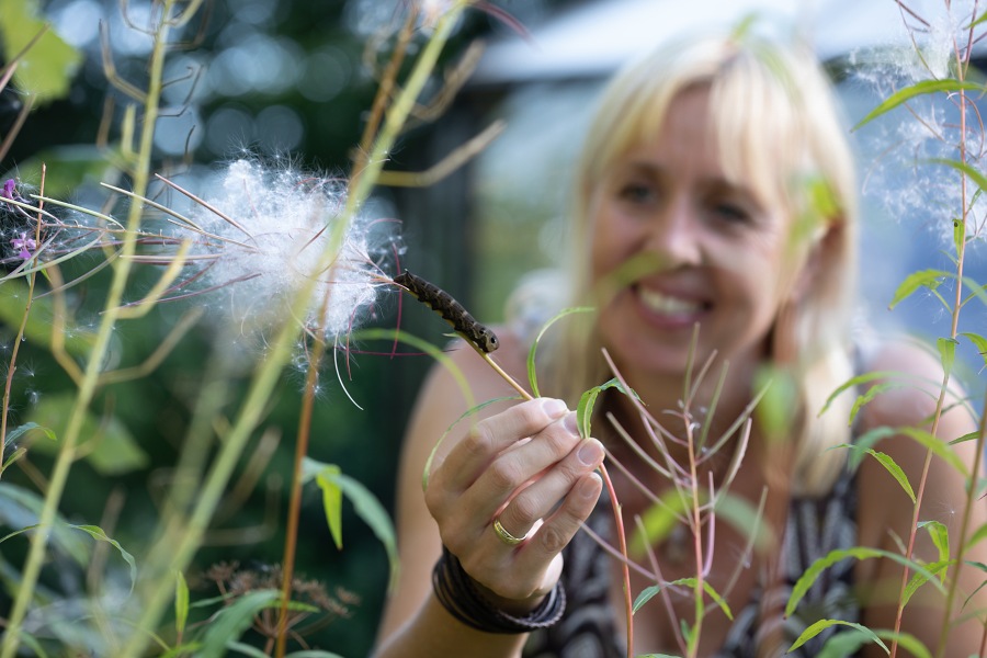Med vilde blomster følger der ikke sjældent andet spændende med – og i år lykkedes det! Jeg fandt dueurtsværmerens store larve blandt mine afblomstrede gederams.