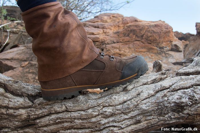 Korte gaiters – her anvendt i Sydafrika. Forhindrer prikkende torne og ukrudstfrø i at ryge ned i støvlen.