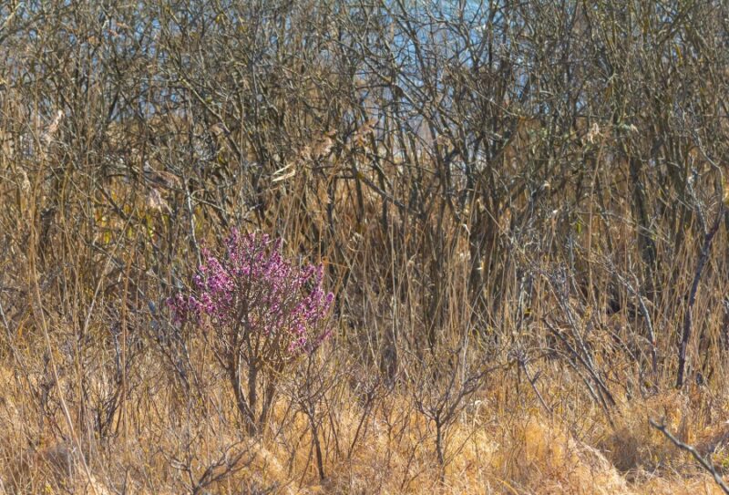 Som naturvandrer kan man undres, hvis man i foråret møder det lille træ med lyserøde blomster. Her fotograferet i Nationalpark Thy.