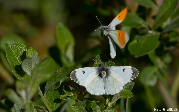 Det kan måske umiddelbart virke som som at sommerfuglen fremviser sin bagkrop, der indeholder insektets kønsorganer, for at lokke til parring, men det er faktisk det modsatte der er tilfældet. Når en han-sommerfugl som aurora-hannen på billedet nærmer sig en hun, så viser hun at hun allerede er parret ved at stritte løftende med hendes bagkrop.