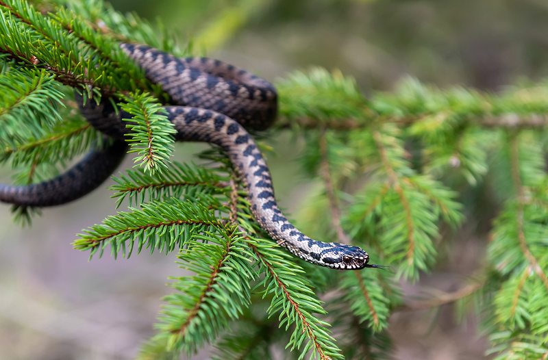 Nogle slanger er tilpasset et liv i trækronerne. På vores breddegrader er især æskulapsnogen, der også har levet i Danmark, kendt for at klatre i træer. Hvad med hugormen?, spørger en læser. Klatrer hugormen i træer?