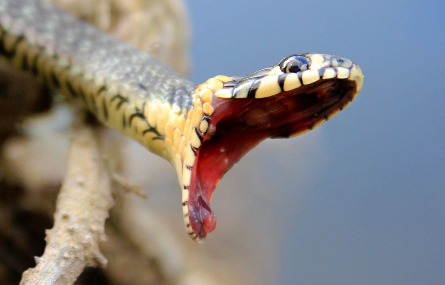 Hugormen er giftig – og man skal undgå at blive bidt af slangen, men hvad med snogen, Danmarks største slange? Kan snogen også bide?