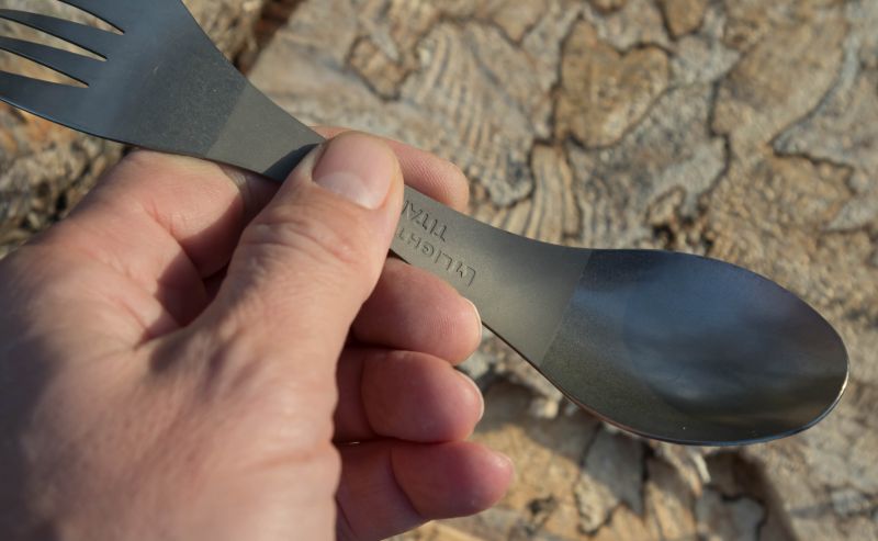 Ordet spork er en sammensætning af de engelske ord “spoon” (ske) og “fork” (gaffel). Denne spork, lavet af titanium, vejer kun 17 gram.