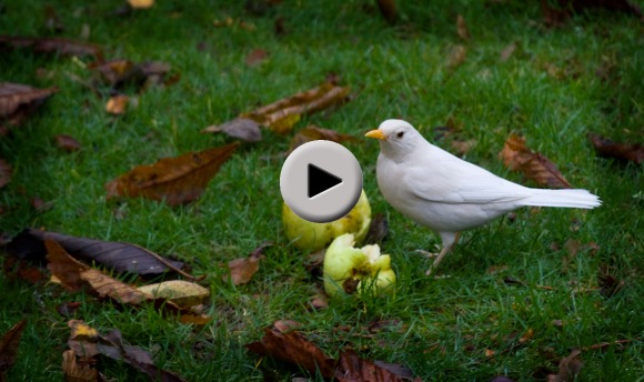 Solsorten er sort. Det ved de fleste! Der er dog undtagelser for reglen. Det sker af og til, at der dukker solsorte op med hvide aftegninger, hvidt hoved eller enkelte hvide fjer. Helt kridhvide solsorte er sjældne. En hel hvid af slagsen har dog i længere tid holdt til i en vestjysk have i den nordlige del af Varde Kommune. Ved første øjekast ledes tanken hen på en albino, men oftest er der tale om en fugl med leucistiske træk, d.v.s hvor farvepigmentet melanin mangler i fjerdragten, men fuglen har normalt farvet ben, øjne og næb. Se video nederst på siden!