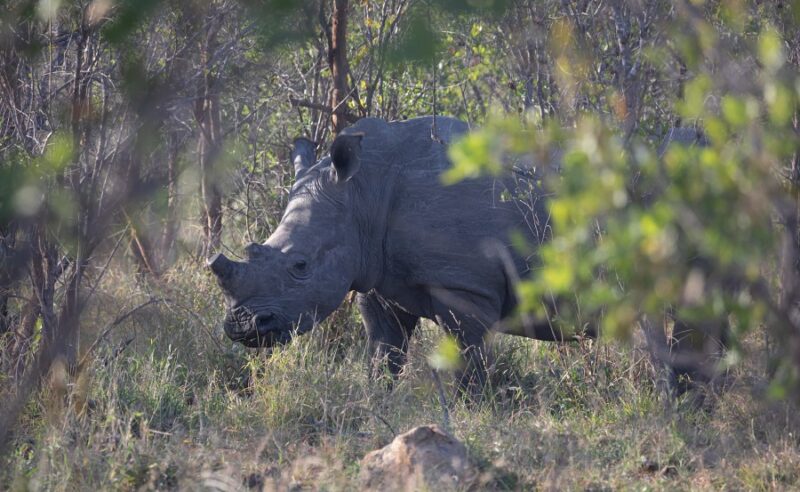 Et næsehorn i Kruger National Park, Sydafrika, har fået fjernet sit horn for at mindske risikoen for at den bliver skudt af krybskytter. Parken oplyser ikke længere til turister, hvor næsehornene befinder sig – da krybskytter lytter med. Foto: Marianne Riis.