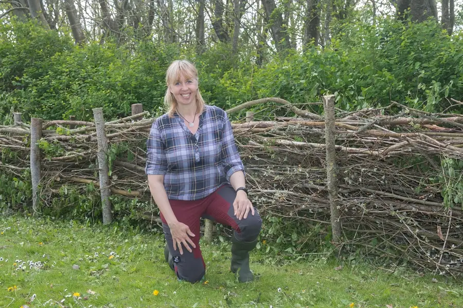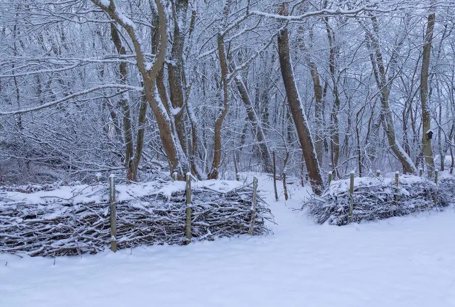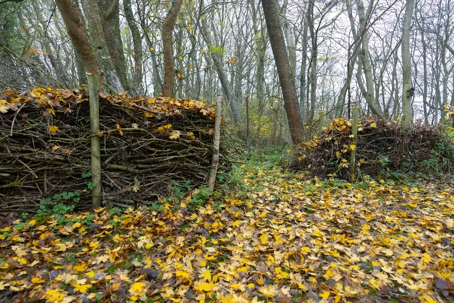 Efterhånden som grenene nedbrydes, kan nyt kvas lægges ovenpå. Jeg bruger primært stolper af naturtræ med bark, som med tiden forgår og derfor må udskiftes med nogle års mellemrum. Det betyder, at hegnet hele tiden fornyes – med en blanding af gammelt og nyt materiale.