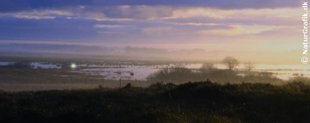 Derude over engen – et par hundrede meter fremme, tændes pludselig et lys! Det blinker kort og forsvinder! Snart efter dukkede det dog frem igen. I det samme flyver en bekkasin forskrækket op – og tilkendegiver sin utilfredshed med forstyrrelsen. Da jeg igen kigger ud over engen er lyset borte…