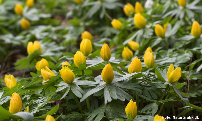 I haven er de første vintergækker og erantis fremme. Pilens hanblomster (gæslinger) er hist og her fremme. Det varer ikke længe før også de første krokus begynder at give farvespil i den endnu vintergrå have. På himlen er der mange trækkende gæs – og der er allerede meldinger om de første traner.