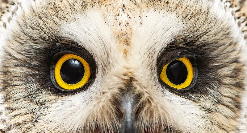 Mosehornuglen har intense gule øjne, hvor vores øvrige hornugler, skovhornuglen og stor hornugle har orange-røde øjne. Foto: © Mriya Wildlife | Dreamstime.com.