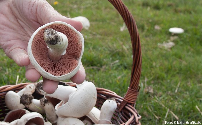 74.95,-Marianne tager et ungt eksemplar op og fremviser de nærmest rosafarvede lameller. “Lidt ældre mark-champignon får chokoladebrune lameller“, fortæller hun. “De kan også sagtens spises, men de unge, faste er de bedste“.