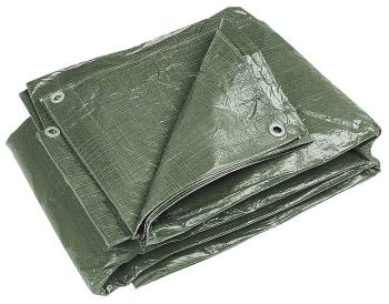 Køb to grønne, vandtætte letvægts-presenninger i det lokale byggemarked. Ca. 2×3 meter. I Jem & Fix er prisen ca. 12 kr./stk.