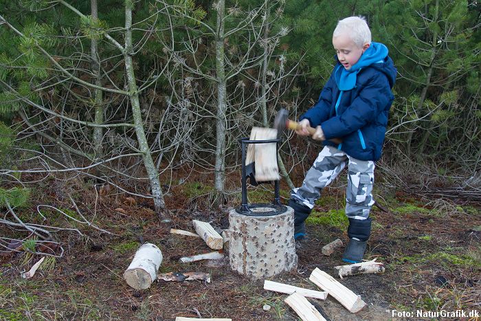 Christian på 5 år klarer let at flække brænde til bålet ved brug af en Kindling Cracker.