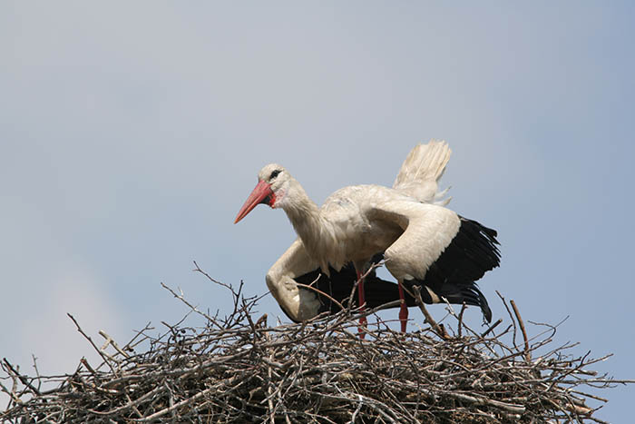 Det var tilbage i starten af april, at de fem storkeæg blev lagt i reden på gartneriets skorsten i Gundsølille. Nu har gartneriejer Jens Andersen set, at der bliver fodret i storkereden og det betyder, at der med garanti er klækket de første æg. Om alle fem æg bliver konverteret til flyvefærdige unger er nok tvivlsomt da det kræver meget af storkeparret. Succesraten afhænger ikke kun af forældrenes evne til at finde føde, men i høj grad også af vejret. Det kræver nemlig godt storkevejr at få flyvefærdige unger. Optimalt storkevejr betyder, at det ikke må være for vådt, men heller ikke for tørt. Der må gerne komme regnbyger for det skaber gode betingelser for fødegrundlaget. Byder den kommende tid på skybrud og længerevarende regn vil det blive en svært for ungerne at klare sig. Særligt de næste 2-3 uger vil være afgørende.