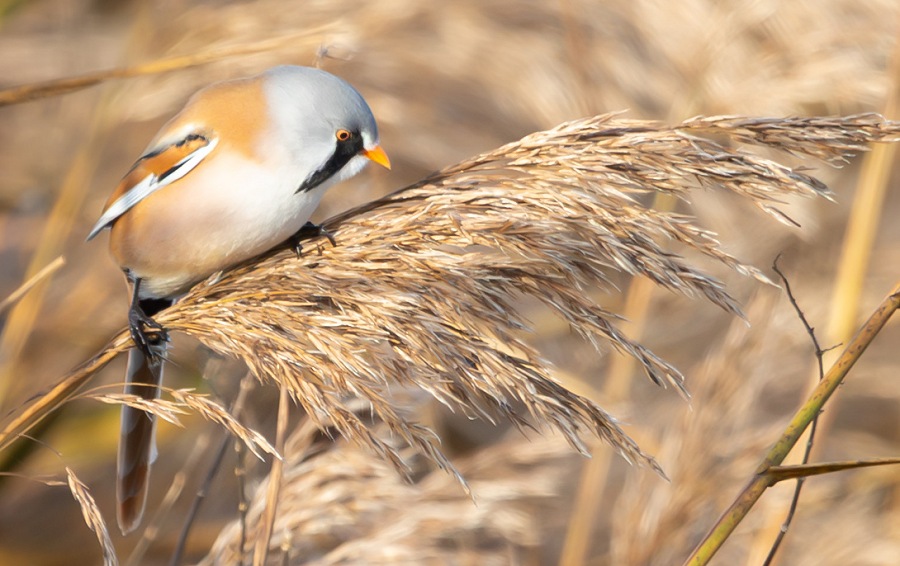 Her holder en helt særlig fugl til: skægmejsen, Panurus biarmicus. En langhalet mejselignende fugl, der hører til papegøjemejserne, der tæller 19 arter af timaliefamilien, der primært lever i Asien.