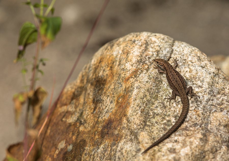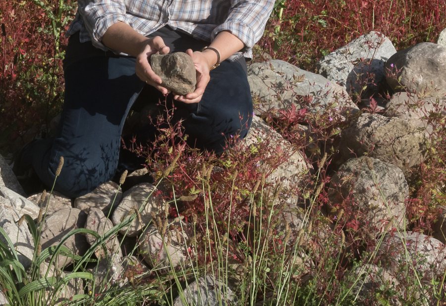 Både i min sommerhushave og haven hjemme er sten med til at skabe rum og atmosfære. Jeg kan godt lide sten – store og små, og jeg kan næsten ikke lade være med at samle smukke sten når vi vandrer langs stranden. Sten er dog meget mere end pryd og pynt. Omkring stenene finder jeg masser af liv. Stenene opvarmes af solen og holder længe på varmen. Jeg ser ikke sjældent firben og sommerfugle solbade på stenene.