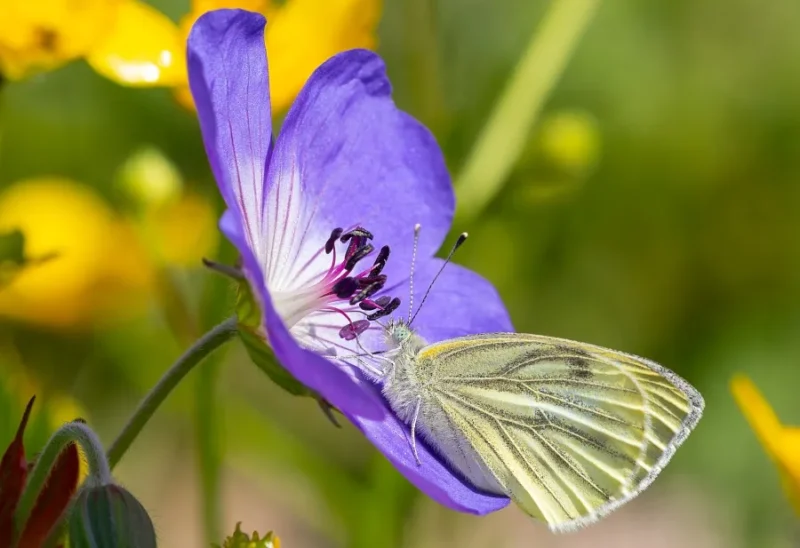 Der findes mange havesorter og hybrider af storkenæb, der er gode til insekter. Sorter som den længe blomstrende “Rozanne” og “Jolly Bee” er gode tiltrækkere af både bier og sommerfugle – og blomstrer fra sommer til frost.