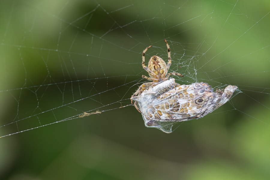 - Genbrug: arter som korsedderkoppen spiser gamle spind og genanvender op til 90 % af silken.