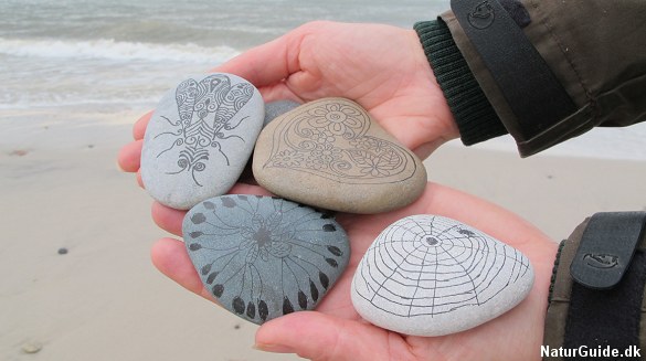 Dekorative doodle-sten af naturvejleder Sabine Jensen.