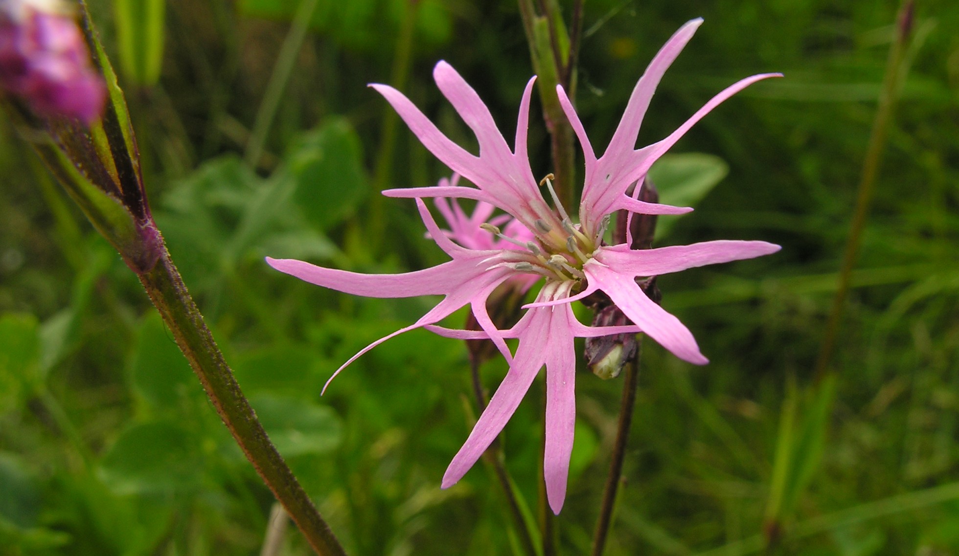 Smukt står den på enge og marker og vejer ud over landskabet. Det er den fine, lyserøde trævlekrone (Lychnis flos-cuculi) jeg henviser til. Nogle gange står den kun hist og her, men på den gode fugtige, blomstereng, står de gerne flere sammen. Nogle gange så mange at blomsterne danner små, lyserøde tæpper på engen. Kommer man tæt på ser den straks lidt mere pjusket ud. Blomsten virker lidt laset eller trævlet, deraf navnet trævlekrone.