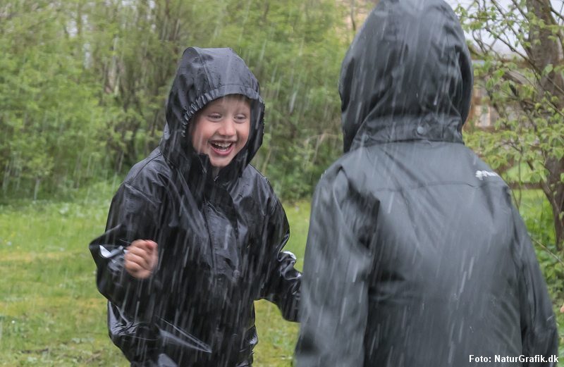 Når vi taler regntøj til børn er ovennævnte parametre også vigtige. Til mindre børn er der dog nogle ekstra ting at tage højde for. Børn bevæger sig ofte mere eller anderledes end vokse når de leger eller er på opdagelse i naturen. Det er vigtigt, at regntøjet er stort nok (hellere lidt for stort end for lille) dog uden at de falder i det.
