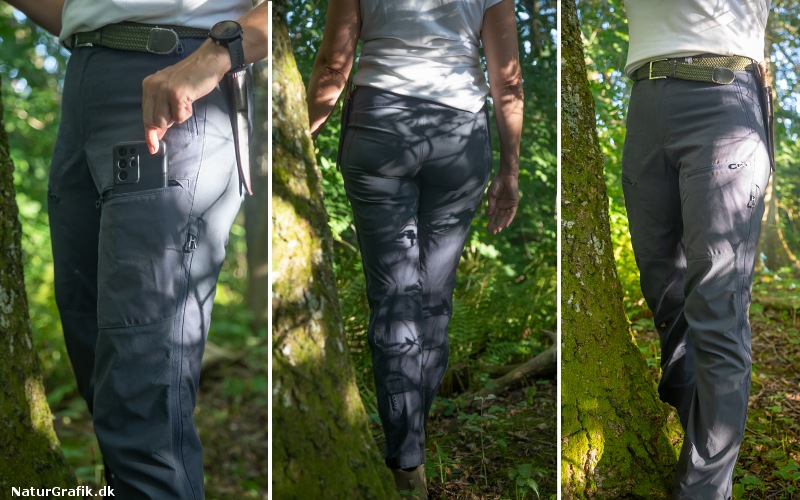 For mig er sidelommer på mine vandrebukser et “must”. Jeg bruger altid mine sidelommer – ikke mindst til telefonen som jeg gerne vil have lige ved hånden. På Verglas Tur pants sidder lommerne foran på lårene frem for på siden. Det giver klart bukserne en pænere – og nok også mere feminin facon, men det giver også markant mindre plads i lommerne. Nu må kompas, ildstål og hvad jeg ellers kunne finde på at putte i mine lommer, om i tasken. Selvom jeg har en forholdsvis stor smartphone, så går det alligevel ok og jeg føler ikke at telefonen i forlommen begrænser bevægelsesfriheden.