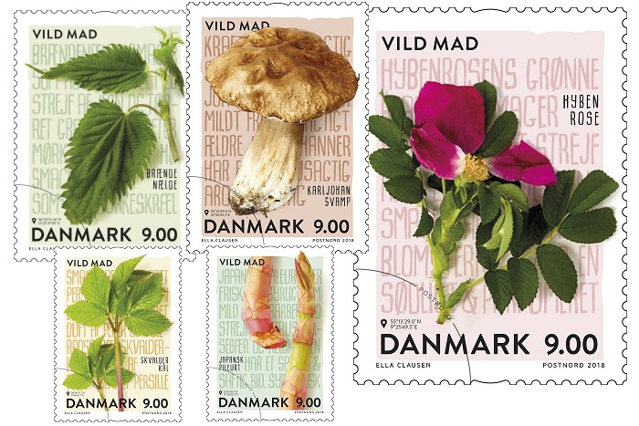 Som en hyldest til den spiselige natur udgiver PostNord nu fem, flotte frimærker med netop vild mad.
